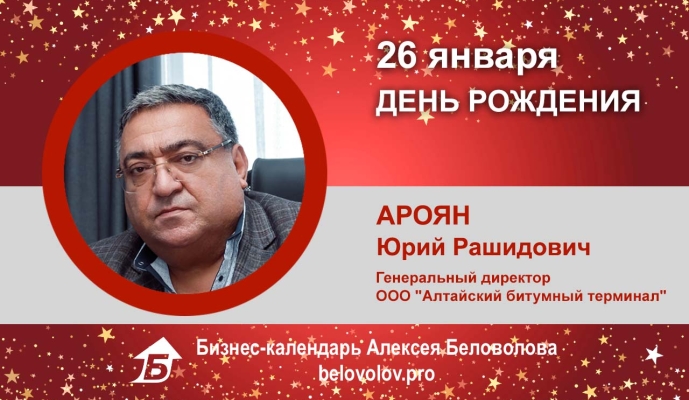 Сегодня День Рождения у генерального директора ООО «Алтайский битумный терминал» Арояна Юрия Рашидовича!