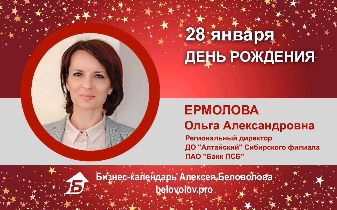 Сегодня День Рождения у регионального директора ДО «Алтайский» Сибирского филиала ПАО «Банк ПСБ» Ермоловой Ольги Александровны!