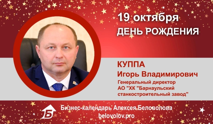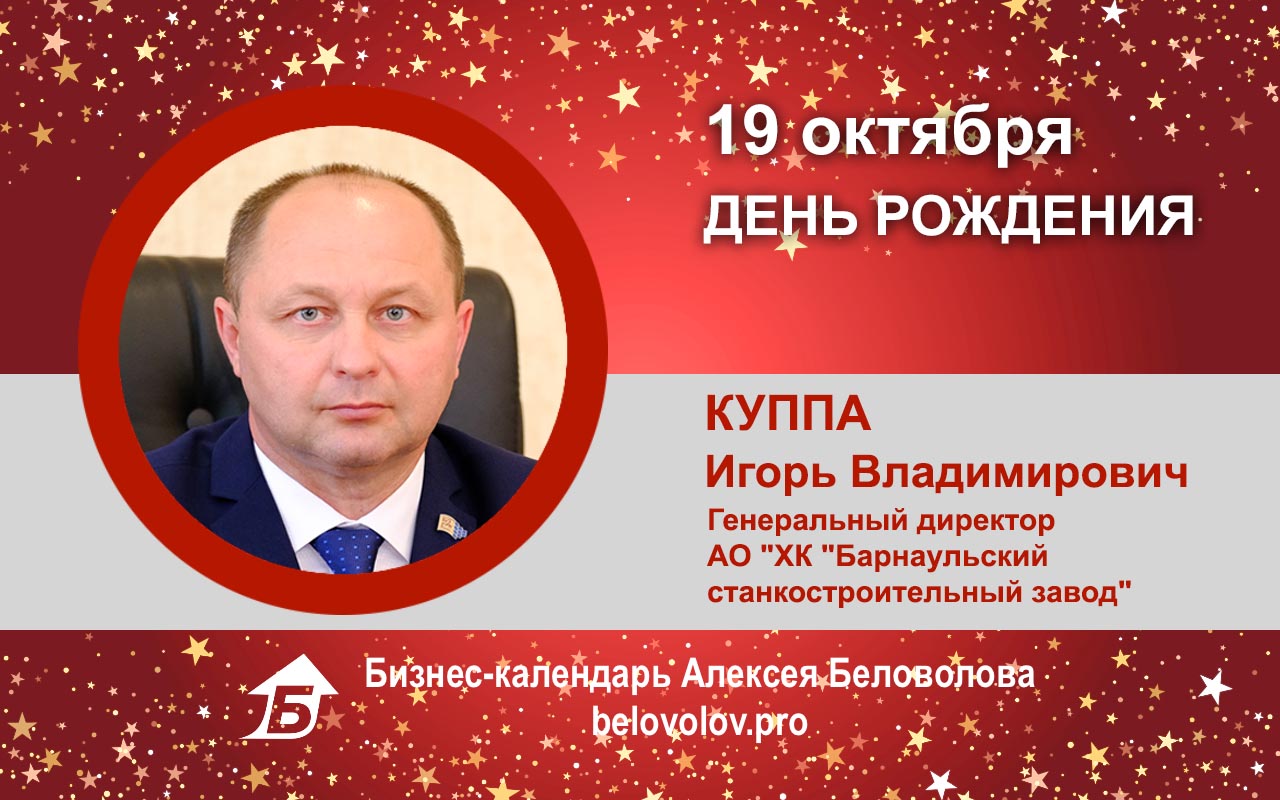 Сегодня День Рождения у генерального директора АО «Холдинговая компания «Барнаульский станкостроительный завод» Куппы Игоря Владимировича!