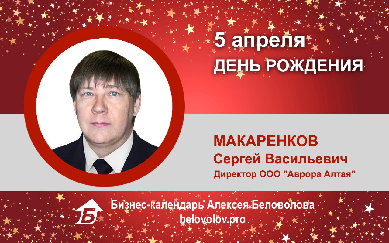 Сегодня День Рождения у директора ООО «Аврора Алтая» Макаренкова Сергея Васильевича!
