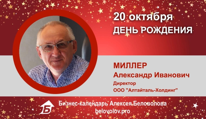 Сегодня День Рождения у директора ООО «Алтайталь-Холдинг» Миллера Александра Ивановича!