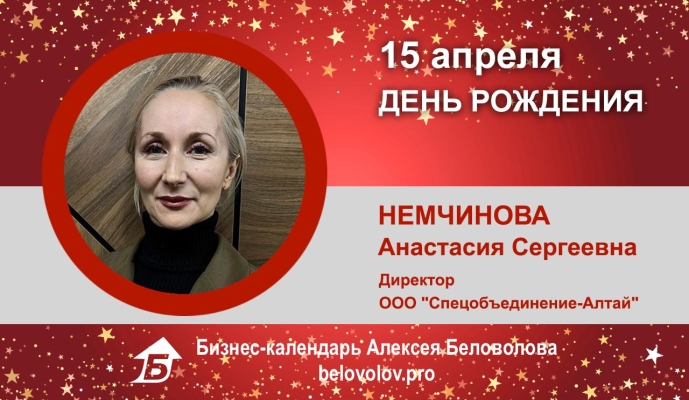 Сегодня День Рождения у директора ООО «Спецобъединение-Алтай» Немчиновой Анастасии Сергеевны!