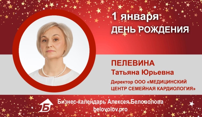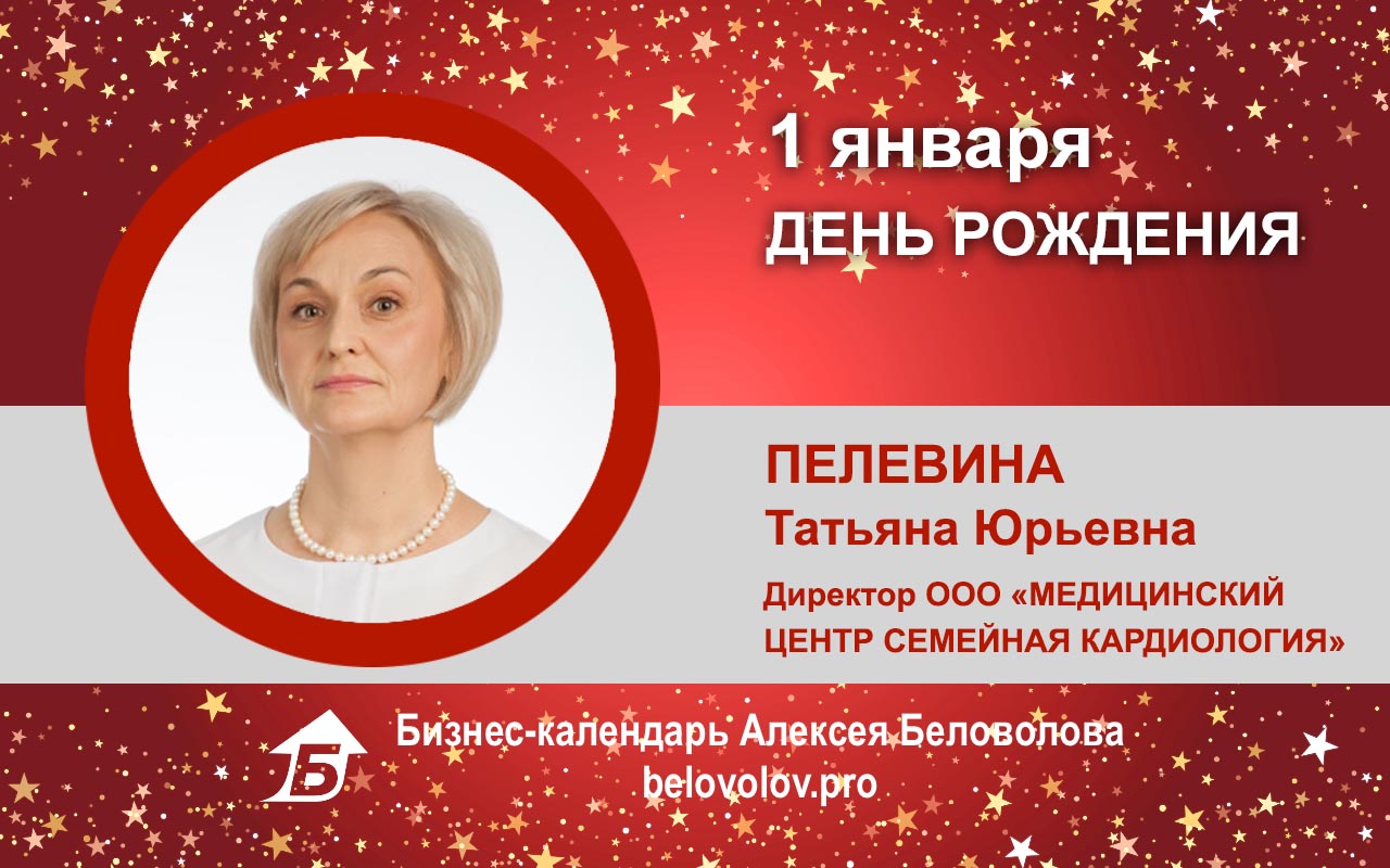 Сегодня День Рождения у директора ООО «МЕДИЦИНСКИЙ ЦЕНТР СЕМЕЙНАЯ КАРДИОЛОГИЯ» Пелевиной Татьяны Юрьевны!