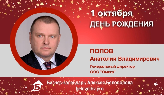 Сегодня День Рождения у генерального директора ООО «Омега» Попова Анатолия Владимировича!