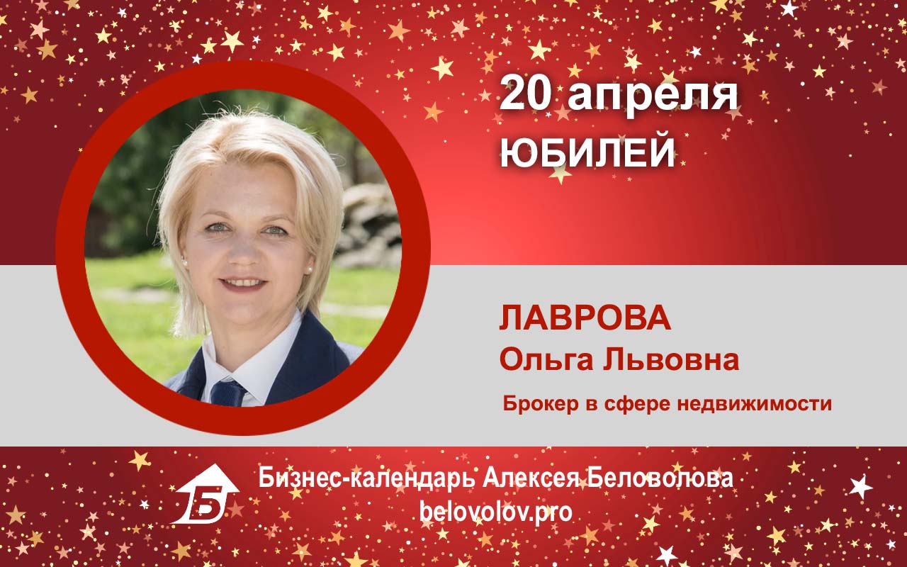 Сегодня Юбилей у брокера в сфере недвижимости Лавровой Ольги Львовны!